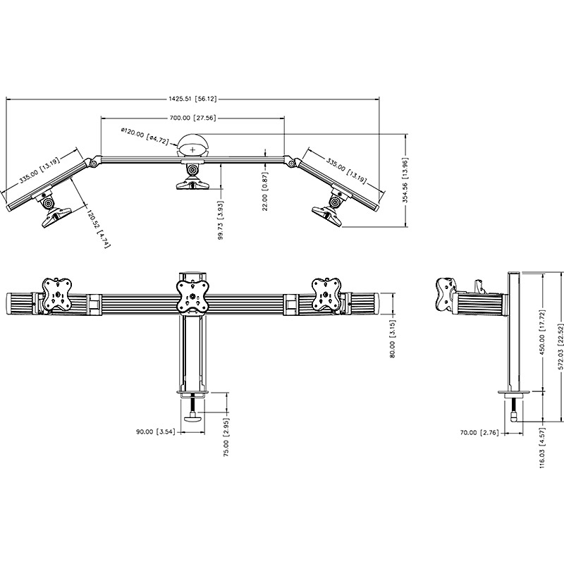 Tool Bar System (three monitors, one layer, swivel arm) is designed by clamp / grommet mounting and the MAX loading could be 12 Kgs (26.4 labs). Modular and multi-screen design saves space and assembles...