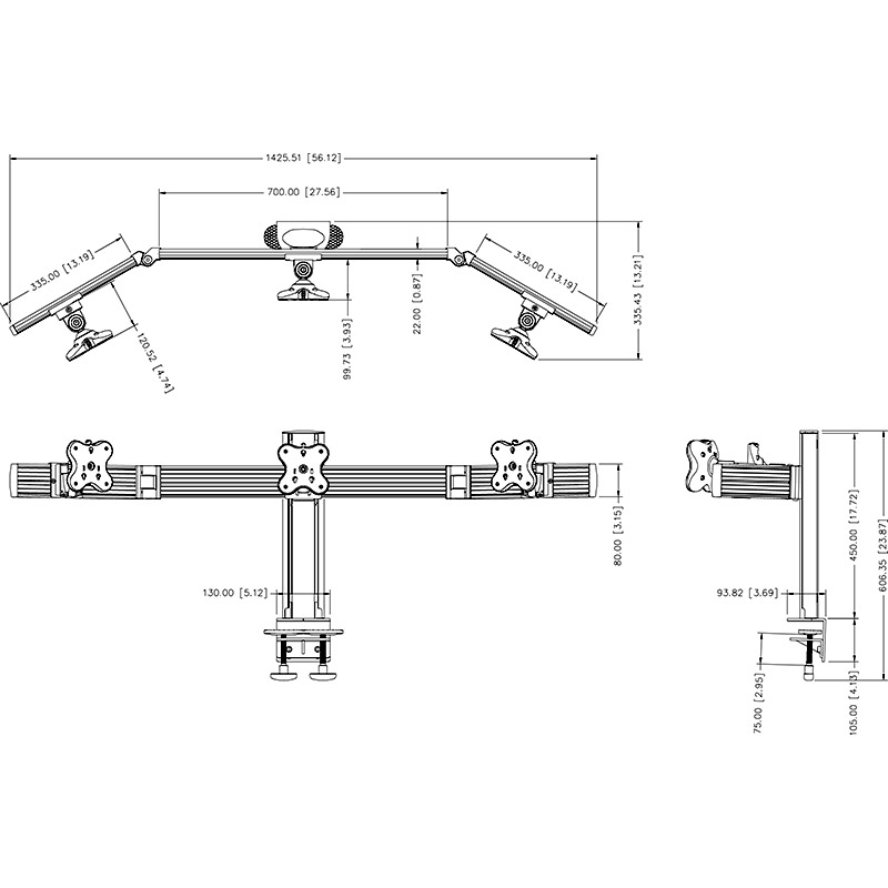 Dragonfly triple monitor arm with 450mm post height is designed for clamp or grommet mount application and the loading range could be 1.5~8kg (3.3-17.6lbs). The avant-garde appearance and smooth line...
