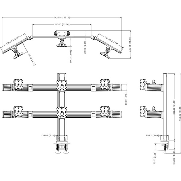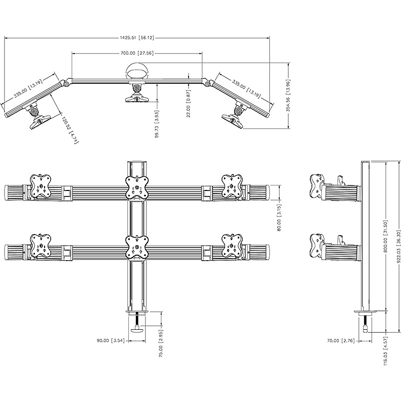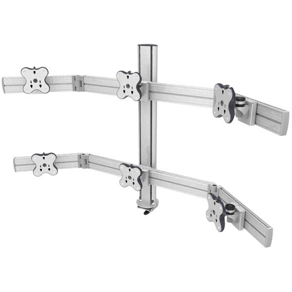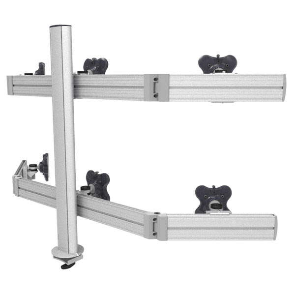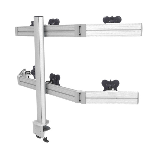 Rail System (four monitors, one layer, swivel arm) is designed by clamp / grommet mounting and the MAX loading could be 12 Kgs (26.4 labs). Modular and multi-screen design saves space and assembles quickly....