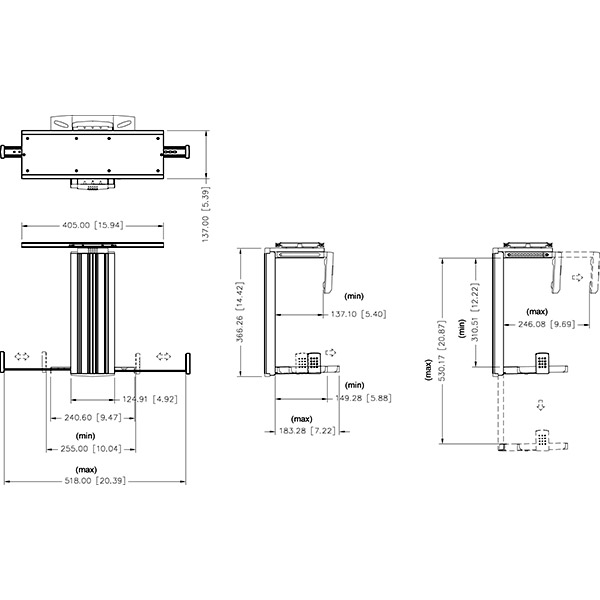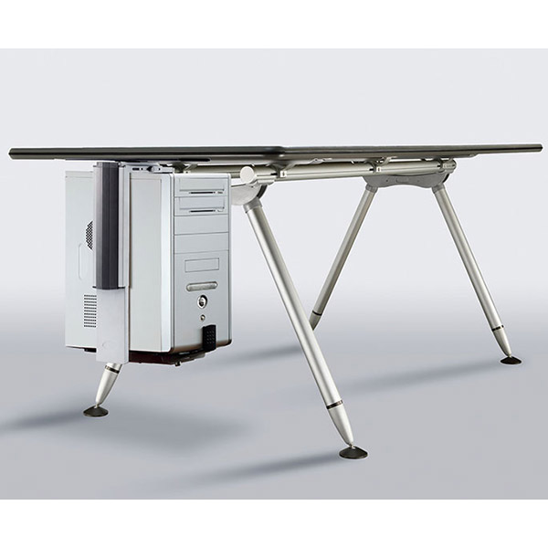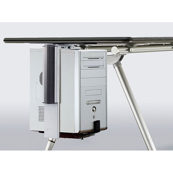 CPU Holder is designed to solve the inconvenience of using the CPU. Thinking from an ergonomic point, the top slide rail can be rotated 360 degrees, which is convenient for the use of back-end functions and store your CPU below work surface to protect against dust and save workspace. An anti-theft kit can be installed for option.