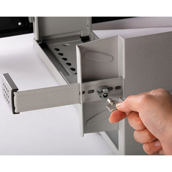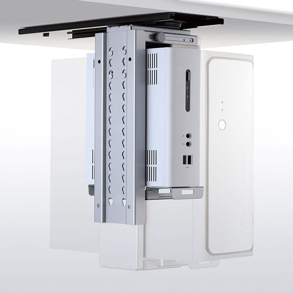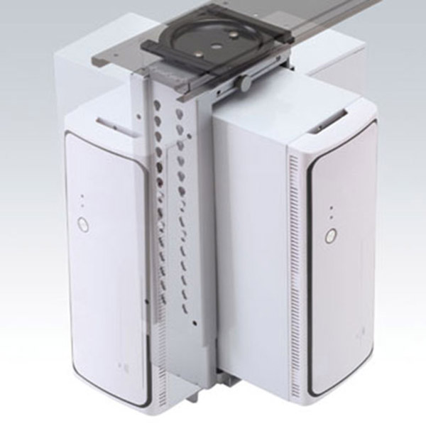 Slim CPU Holder is designed to solve the inconvenience of using the CPU. Thinking from an ergonomic point, the top slide rail can be rotated 360 degrees, which is convenient for the use of back-end functions and store your CPU below work surface to protect against dust and save workspace. An anti-theft kit can be installed for option.
