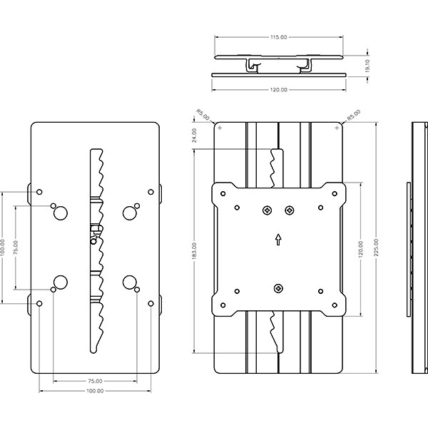 Height Adjustment Runner - For normal VESA plateRunner - Square metal Shape offers easy height adjustment.