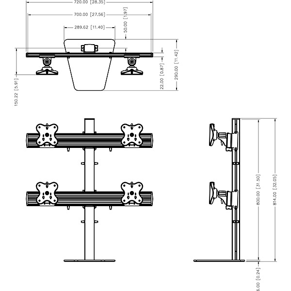 Four Monitor Arms - Free Standing Type with 2 Layer