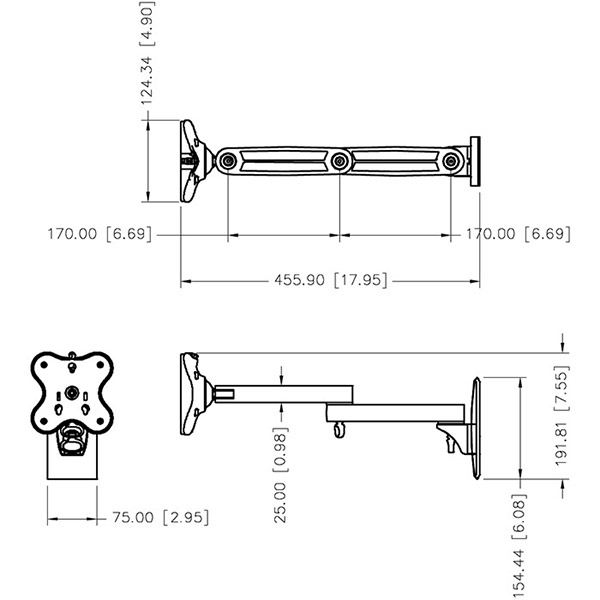 Butterfly single monitor arm wall mount type (two extension arm) loading capacity is up to 12 Kgs (26.4 lbs). It can enlarge the desktop space, whether at home or in the office, use the monitor arm to set the screen. Sturdy material and design.