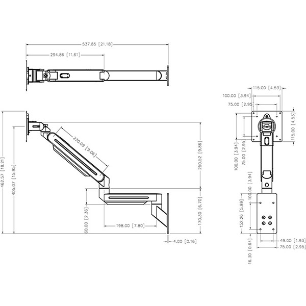 Due to the large adjustment range, the screen can be adjusted to a comfortable place according to the position of the user sitting or standing at the time. At the same time, the tilt range is also large, which prevents users from stretching their necks or shrugging their shoulders when looking at the screen - maintaining healthier posture and improving work efficiency. The adjustment range and tilt range are also perfectly compatible with touchscreens and great benefit to those devices with progressive lenses.