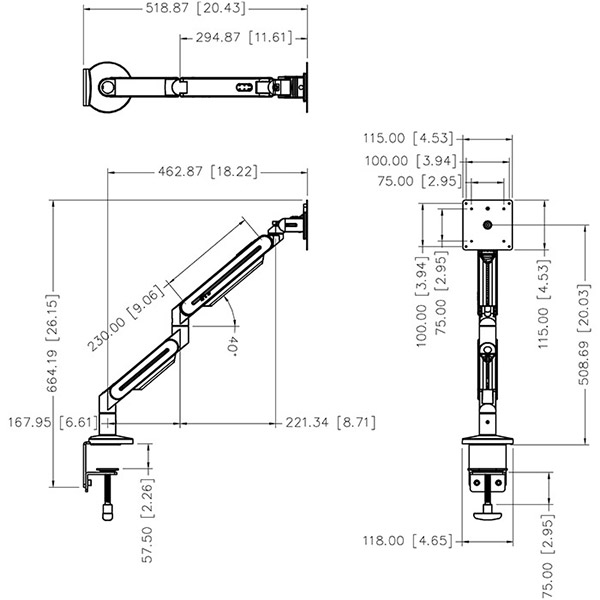 Due to the large adjustment range, the screen can be adjusted to a comfortable place according to the position of the user sitting or standing at the time. At the same time, the tilt range is also large, which prevents users from stretching their necks or shrugging their shoulders when looking at the screen - maintaining healthier posture and improving work efficiency. The adjustment range and tilt range are also perfectly compatible with touchscreens and great benefit to those devices with progressive lenses.