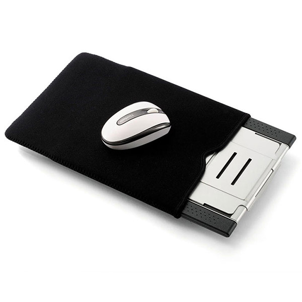 - Black neoprene bag applies as a mouse pad.