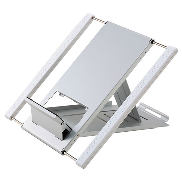 Laptop Stand is with width and six options of visual height adjustment, which can adjust to appropriate ergonomic height according to the user. Not only increases the heat dispersal space, but also adopts a foldable design. Made by aluminum and plastic with slim shape and light weight is easy to carry on.
