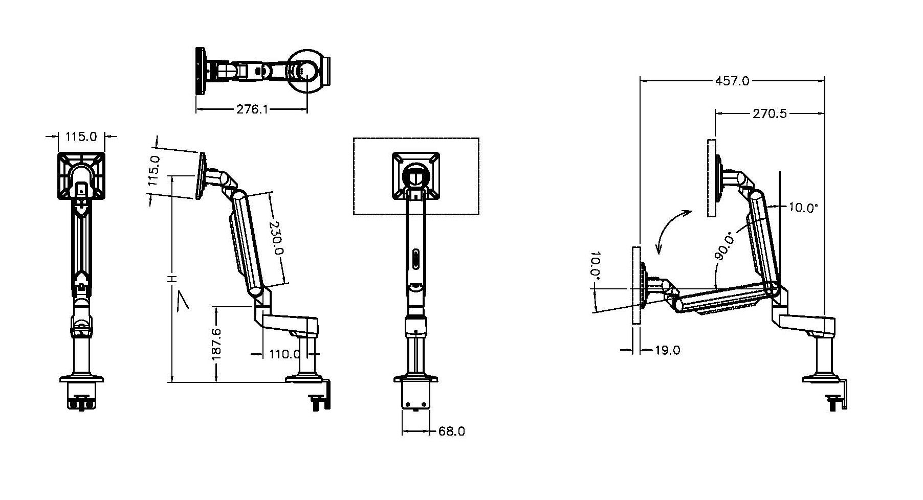 Due to the large adjustment range, the screen can be adjusted to a comfortable place according to the position of the user sitting or standing at the time. At the same time, the tilt range is also large, which prevents users from stretching their necks or shrugging their shoulders when looking at the screen - maintaining healthier posture and improving work efficiency. The adjustment range and tilt range are also perfectly compatible with touchscreens and great benefit to those devices with progressive lenses.