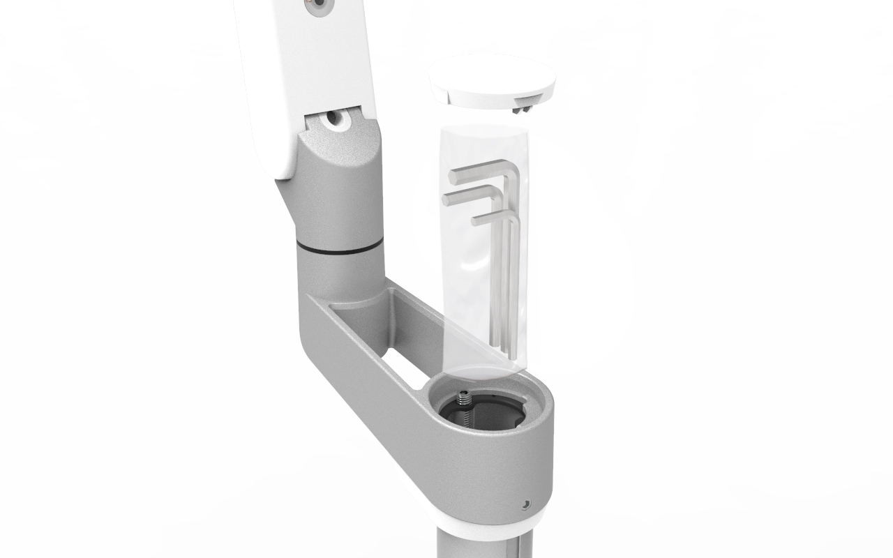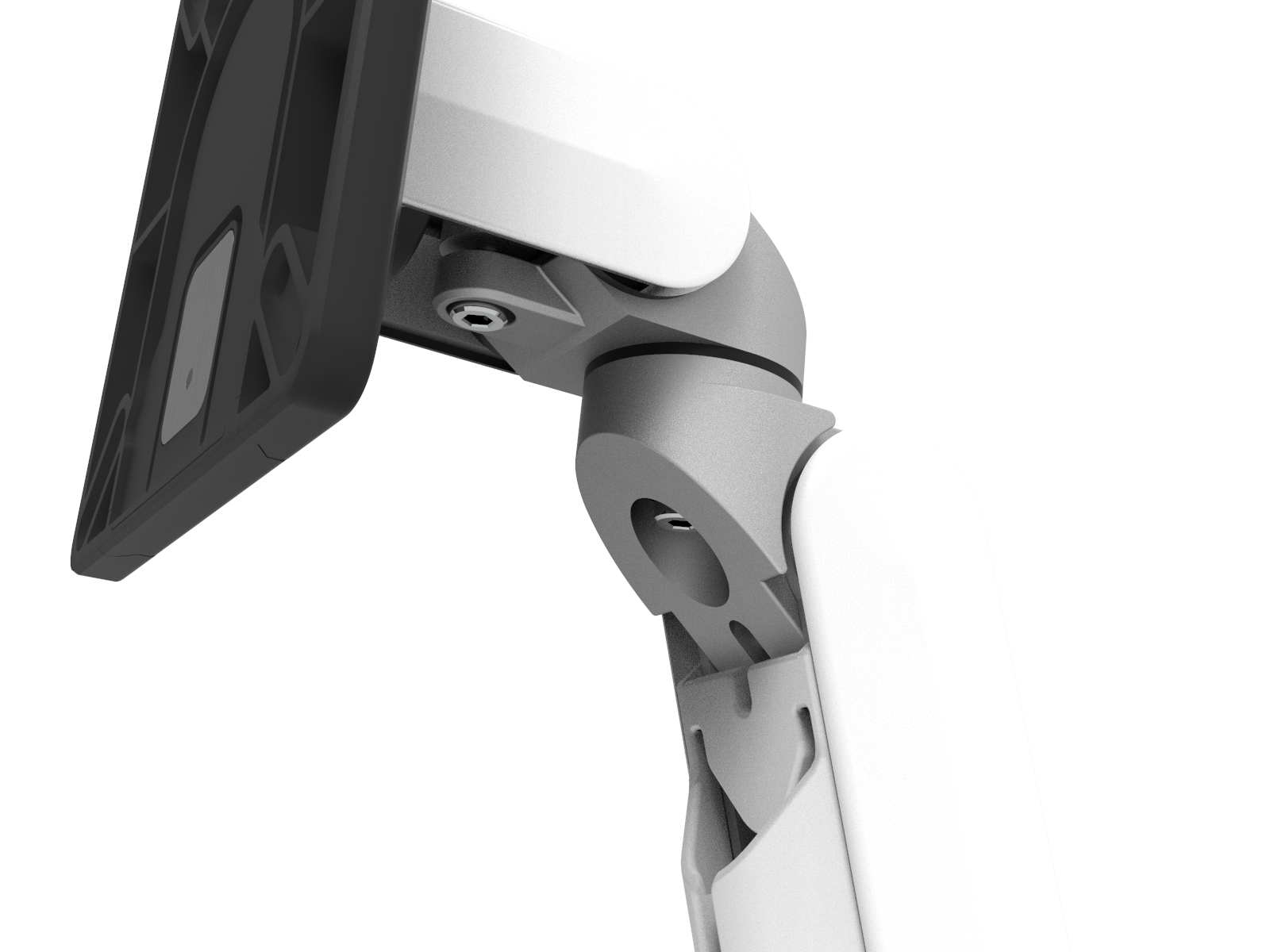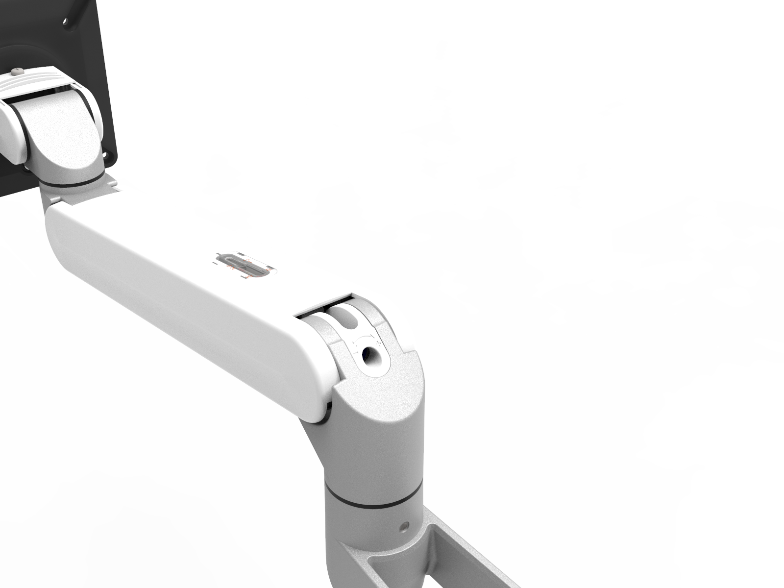 The Meerkat series features easy mobility and adjustment without the need for a knob to fix its position. This is made possible by the presence of an extension spring concealed within the upper arm. Upon initial use, you can insert a hex key into the back of the arm to make adjustments. This ensures that the spring output is balanced with the weight of the screen, allowing for effortless movement and positioning according to your preferences.