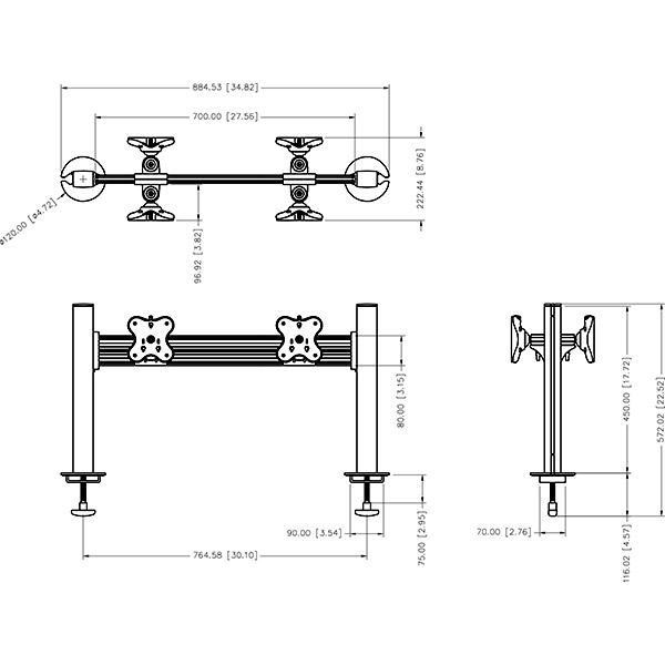 Tool Bar System (four monitors, one layers, back to back) is designed by clamp / grommet mounting and the MAX loading could be 12 Kgs (26.4 labs). Modular and multi-screen design saves space and assembles quickly. It can be adjusted and transformed according to the needs of the environment, which is space beautification.
