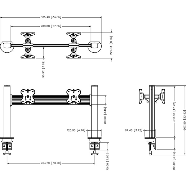 Tool Bar System (three monitors, one layer) is designed by clamp / grommet mounting and the MAX loading could be 12 Kgs (26.4 labs). Modular and multi-screen design saves space and assembles quickly. It can be adjusted...