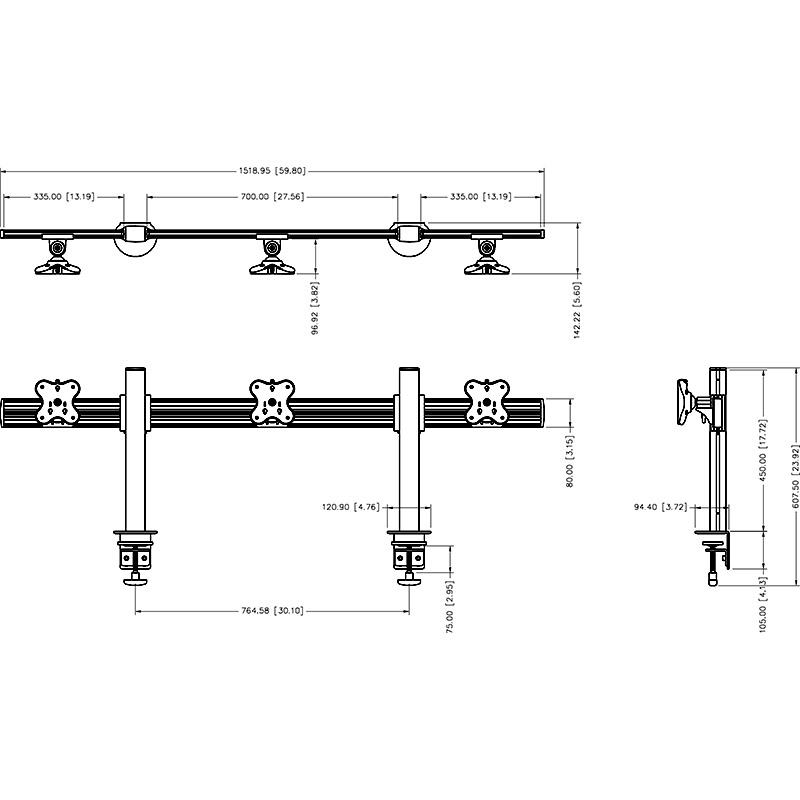 Rail System (three monitors, one layer) is designed by clamp / grommet mounting and the MAX loading could be 12 Kgs (26.4 labs). Modular and multi-screen design saves space and assembles quickly. It can be adjusted...