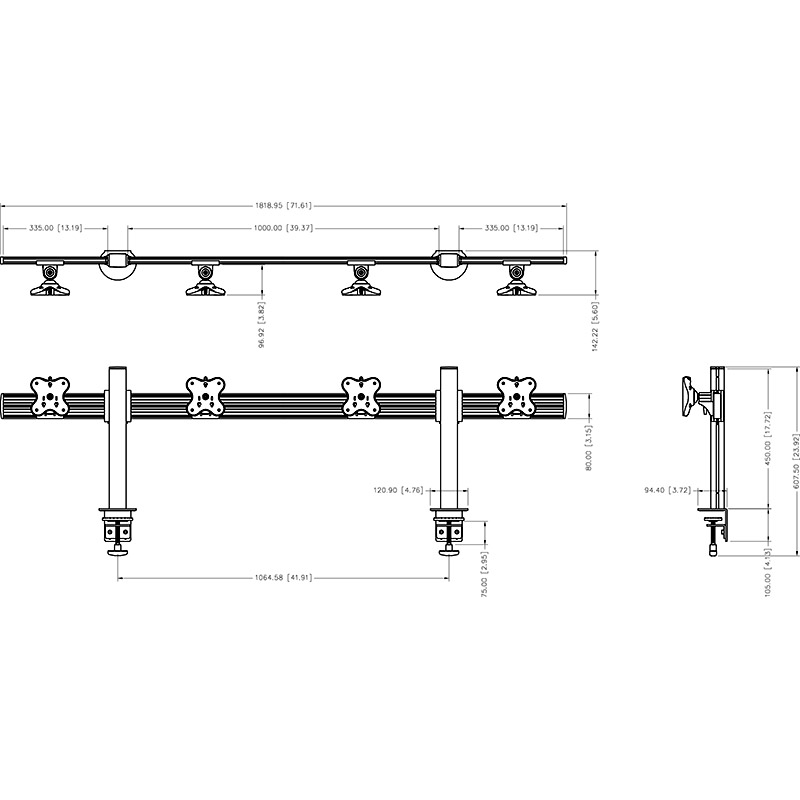 Tool Bar System (four monitors, one layer) is designed by clamp / grommet mounting and the MAX loading could be 12 Kgs (26.4 labs). Modular and multi-screen design saves space and assembles quickly. It can be adjusted and transformed according to the needs of the environment, which is space beautification.