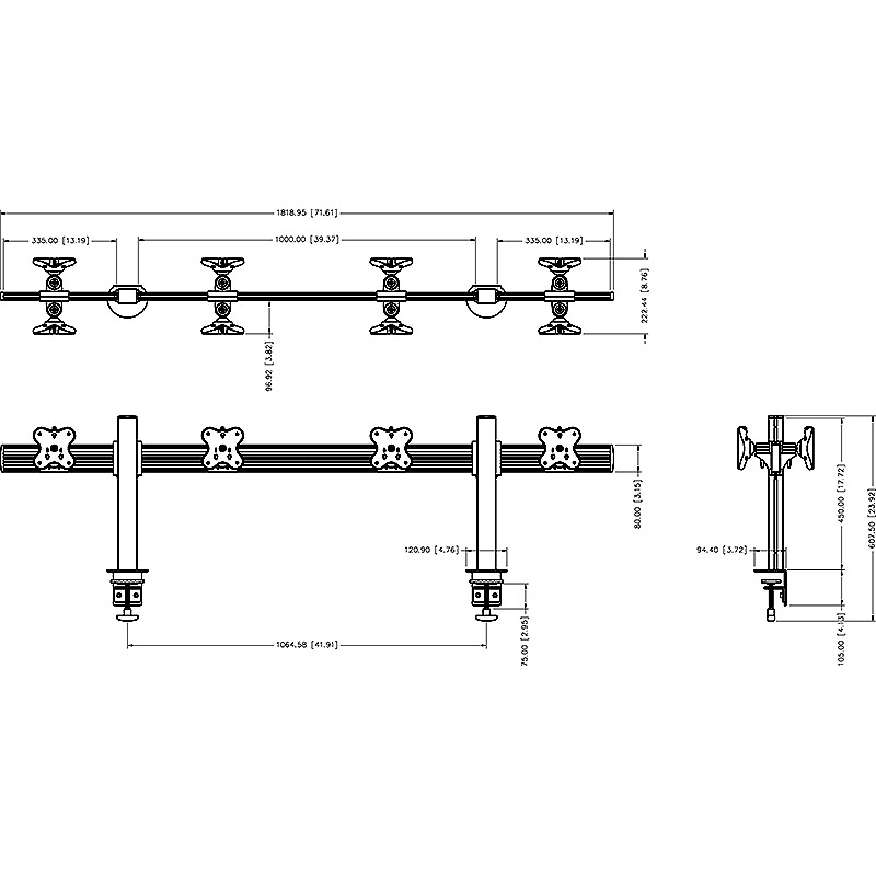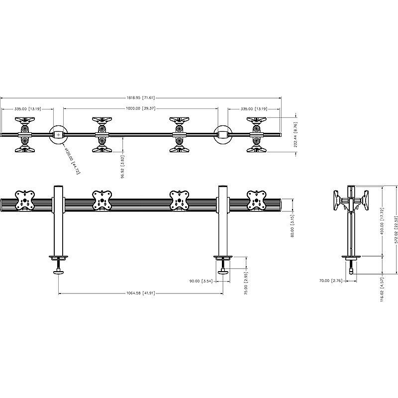 Tool Bar System (four monitors, one layers, back to back) is designed by clamp / grommet mounting and the MAX loading could be 12 Kgs (26.4 labs). Modular and multi-screen design saves space and assembles...
