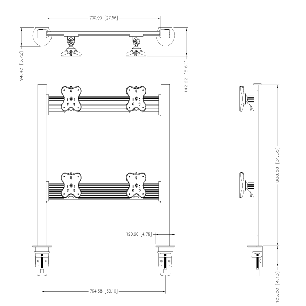 Tool Bar System (four monitors, two layers) is designed by clamp / grommet mounting and the MAX loading could be 12 Kgs (26.4 labs). Modular and multi-screen design saves space and assembles quickly. It can be adjusted and transformed according to the needs of the environment, which is space beautification.