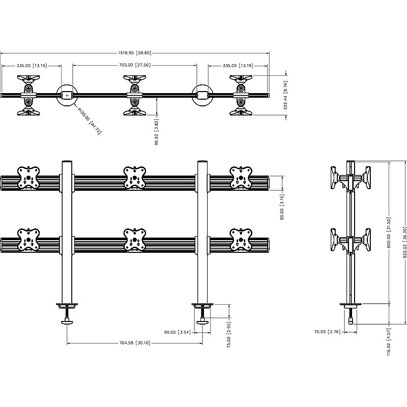 Tool Bar System (eight monitors, two layers, back to back) is designed by clamp / grommet mounting and the MAX loading could be 12 Kgs (26.4 labs). Modular and multi-screen design saves space and assembles...