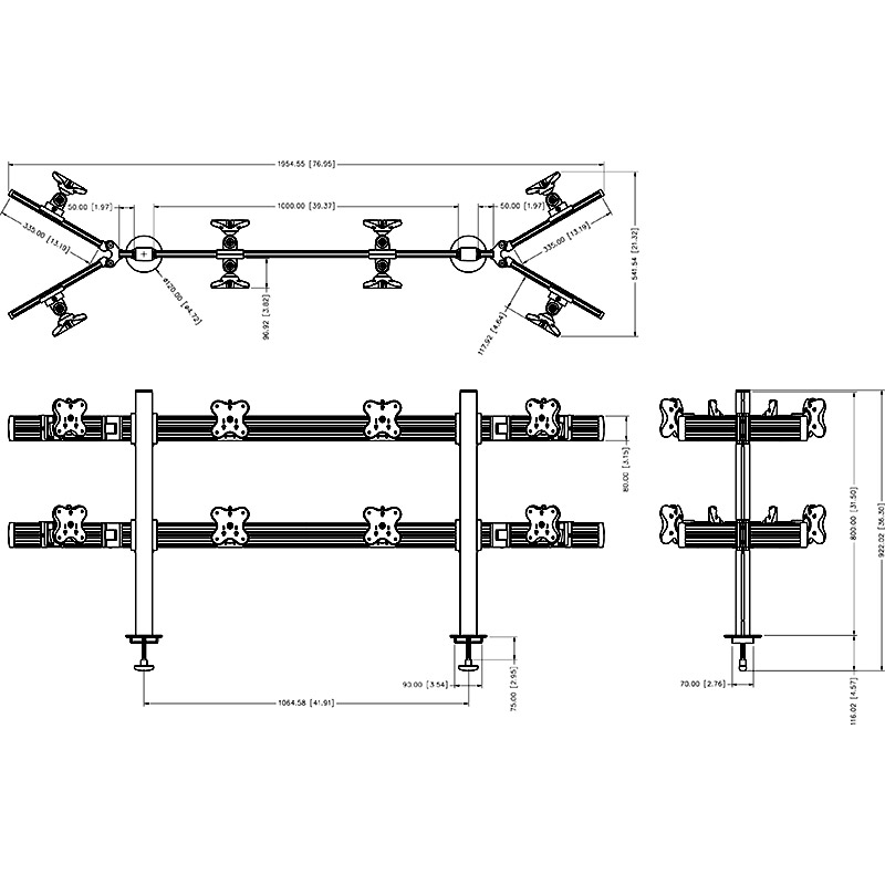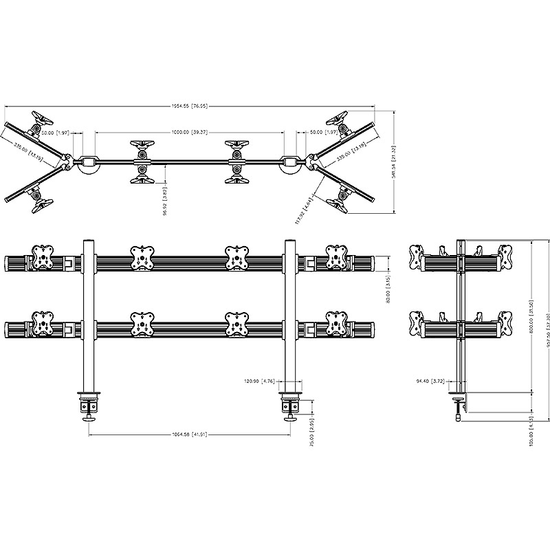 Tool Bar System (four monitors, one layers, back to back) is designed by clamp / grommet mounting and the MAX loading could be 12 Kgs (26.4 labs). Modular and multi-screen design saves space and assembles...