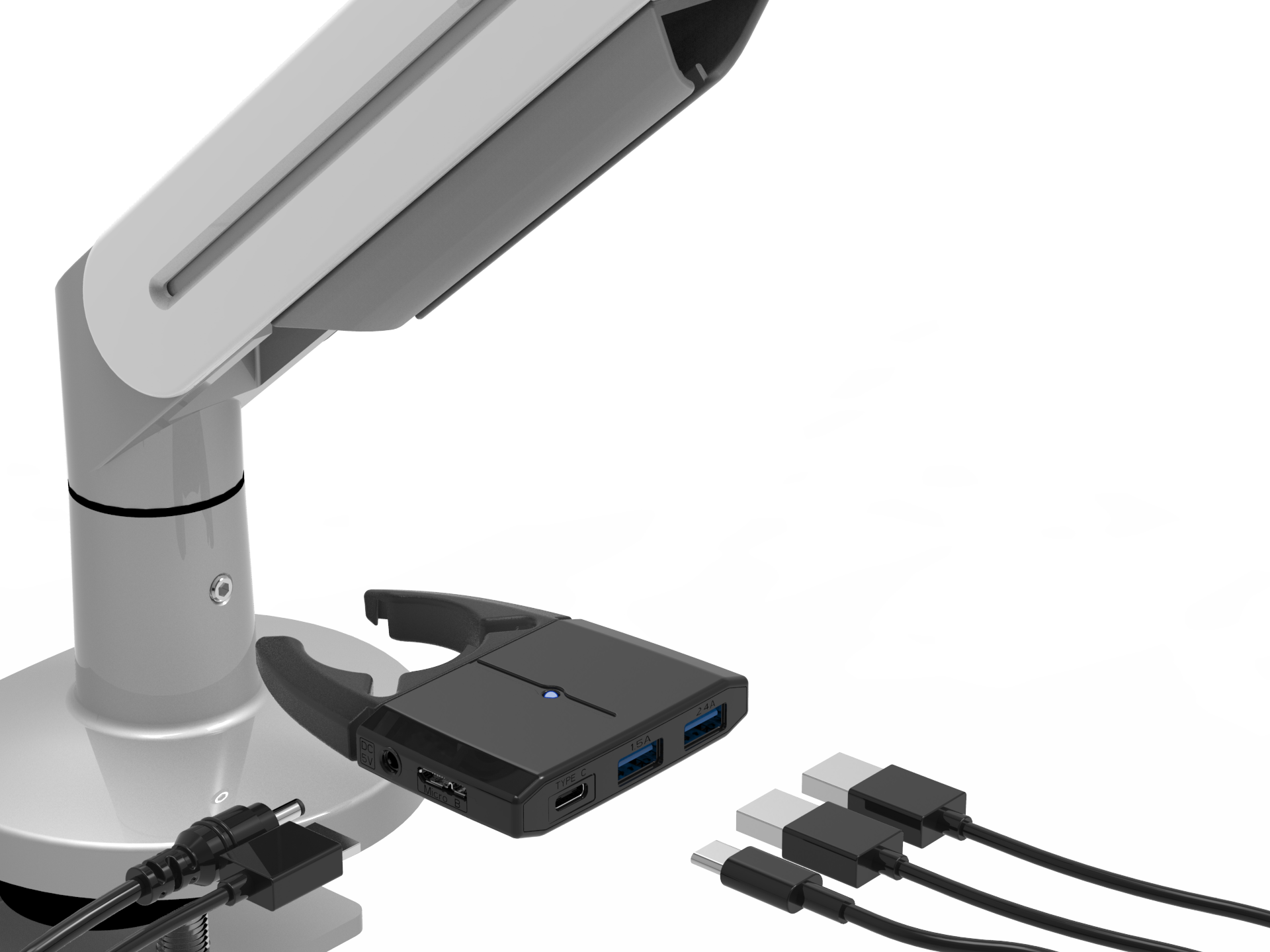 Flycharger USB HUB Add On Power is a widely compatible user-centered device that provides easy portability, fast charging, and data transmission. And can be used with not only Eastern Global's monitor arms but also widely used in other brands' (diameter within 35-42mm).