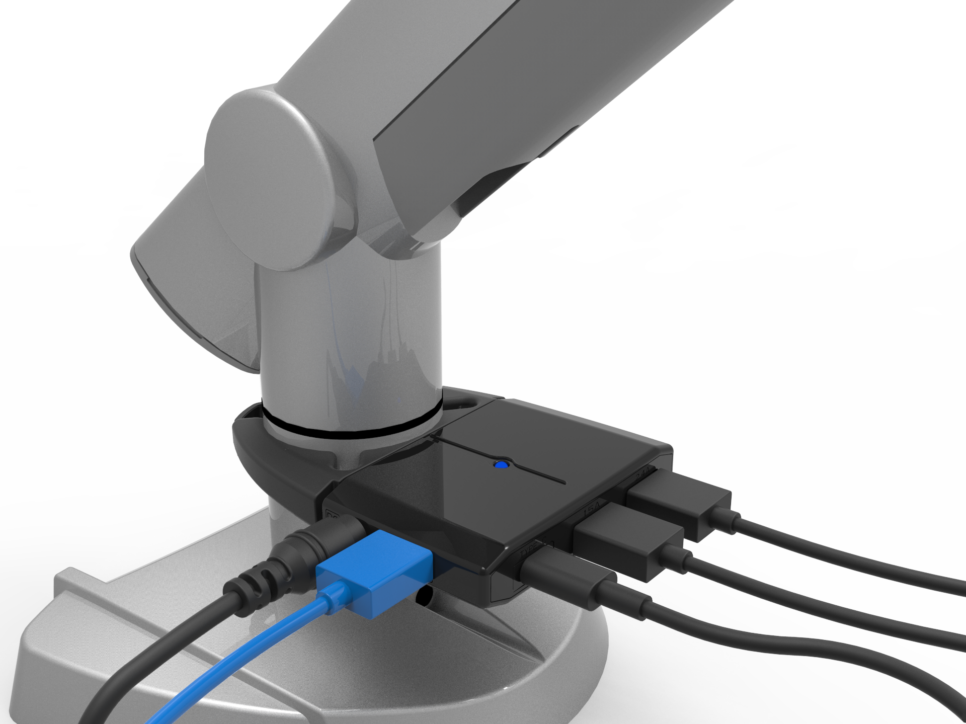 東森全球的USB HUB跟其他廠商的差異在哪?我們是採”額外”安裝的設計,並沒有跟螢幕支架融為一體,這可以減少螢幕支架的成本,讓用不到此功能的客戶不必去負擔這個設計的額外成本。同時我們的產品也方便使用與安裝,提供了多種不同功能的孔洞,不僅可以充電也可以連接電腦傳輸資料等等。