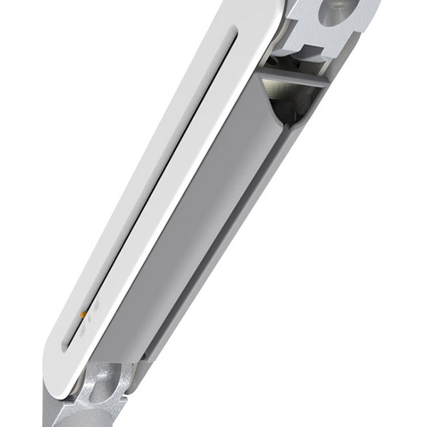 此款Dragonfly桌上型單螢幕支架,承重範圍為 1.5~ 8公斤(3.3-17.6磅)。前衛的造型及流暢的線條設計,採用鋁合金的材質讓您使用上更安全、更堅固。完全符合人體工學,可輕易的將螢幕調整成最舒服的視野範圍。快拆功能,可完全依照個人使用方式及環境空間,隨意變換。支架內部附有理線功能,讓您簡單的將線隱藏在支架內,保持工作空間的整潔,再也不會雜亂無章。工具存儲設計理念也是其競爭優勢之一,體貼的人性化設計,不必擔心小工具容易遺失的問題。另有防盜螺絲可做選配,將螺絲安裝在螢幕快拆部件上,可防止螢幕被偷竊,以確保財產安全。