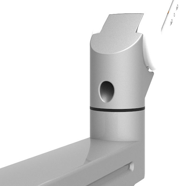 能輕易移動調整,卻無須旋鈕固定,這歸功於上端手臂內暗藏的精密彈簧機構,只要在首次使用時,將六角扳手插入手臂後端調整,使得彈簧出力與螢幕重量均衡,即可隨意移動,放手即停。